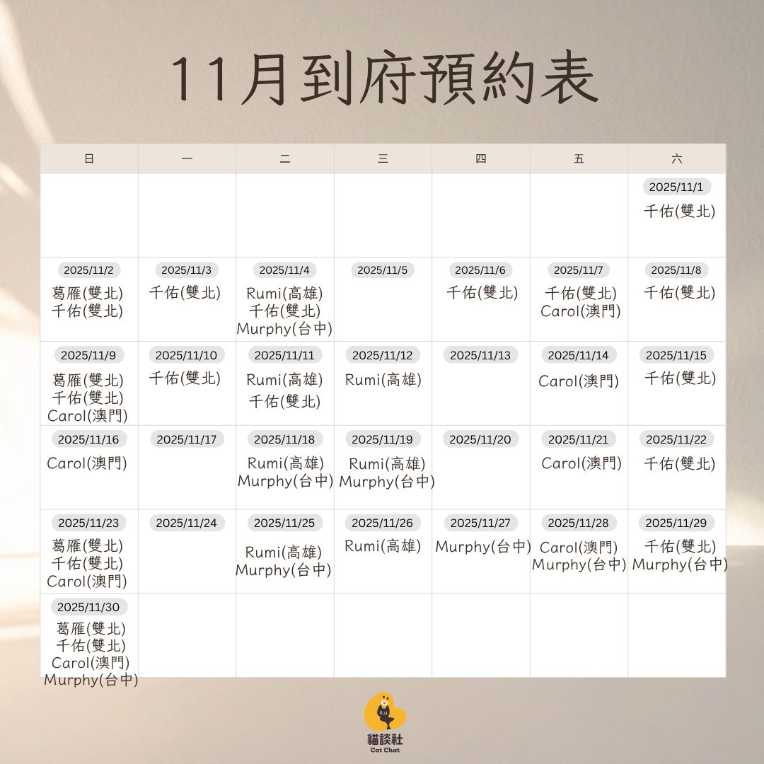 - 預約:Now - 12 月開放預約,急迫插隊個案請私訊詢問
